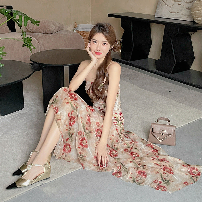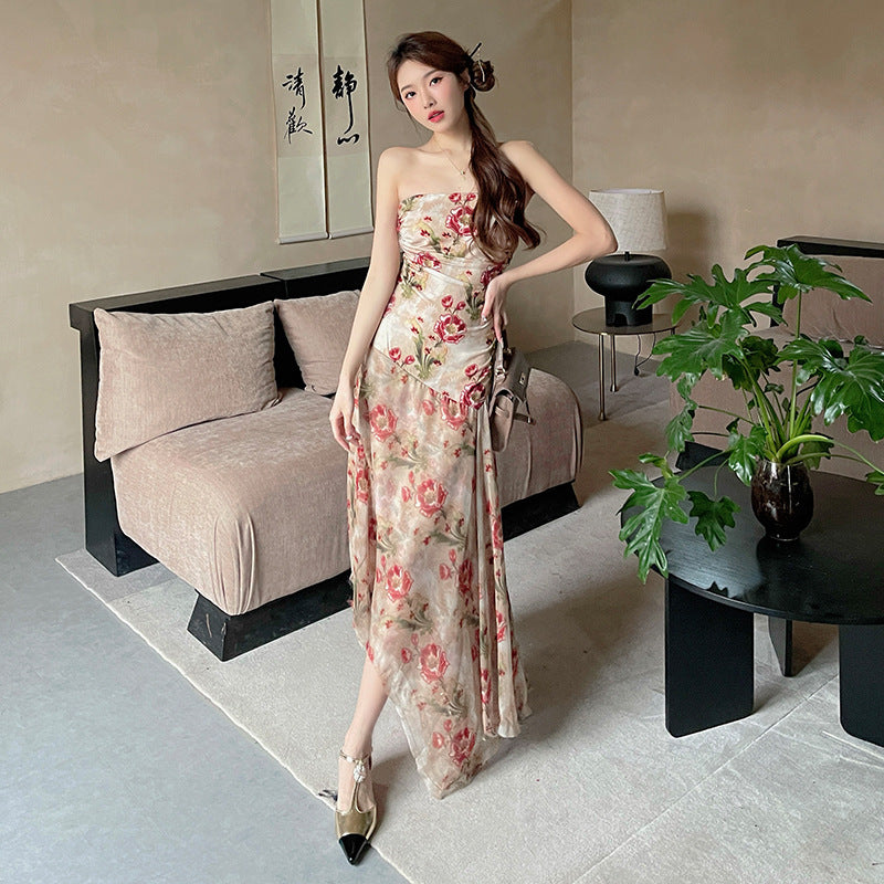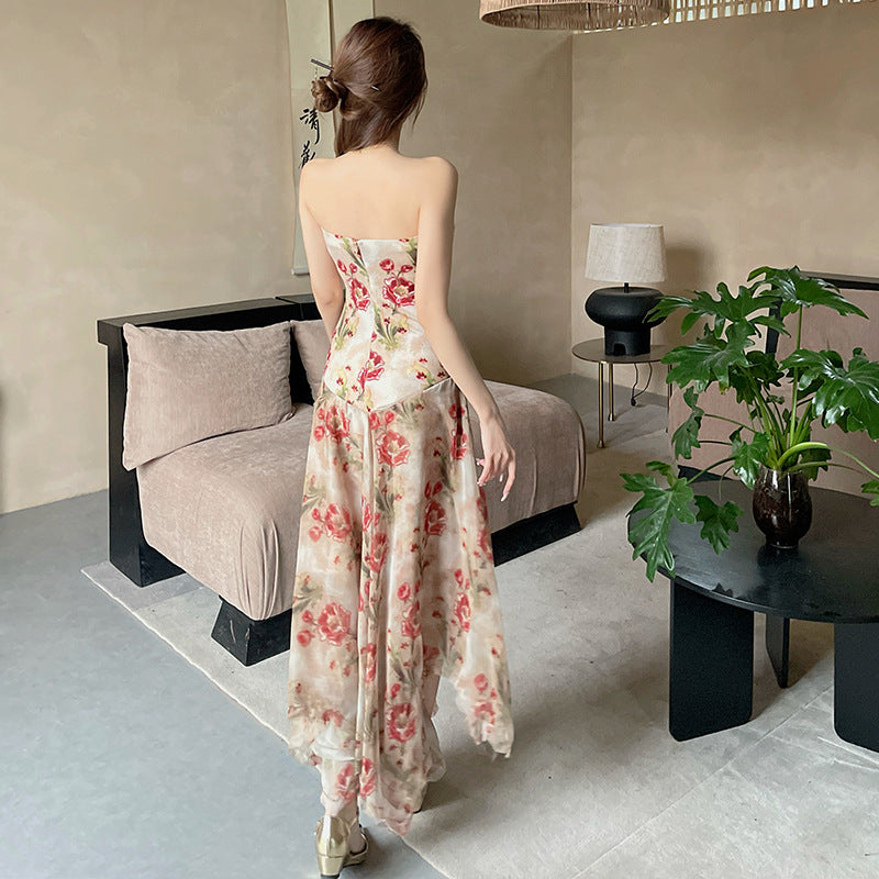 Women's Floral Strapless Long Dress