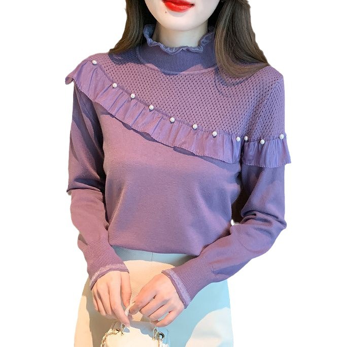 Women's Ruffled Stitching Half-high Collar Long Sleeves Knitwear